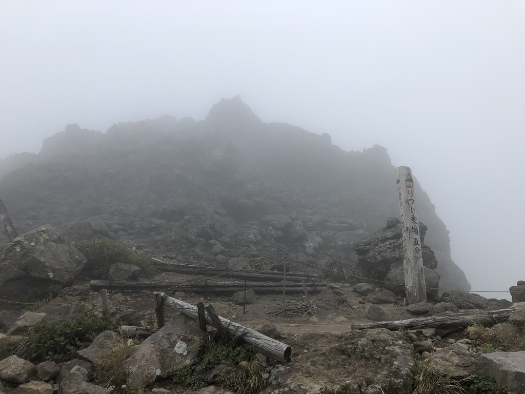 友人からは、「天気が良ければ北海道まで見ることができるよ」と言われていた。あいにく山頂はガスに包まれて何も見えなかったが、ひょっとしてここからなら見えるのではないかと思い、地図と照らし合わせて北の方を眺めた。