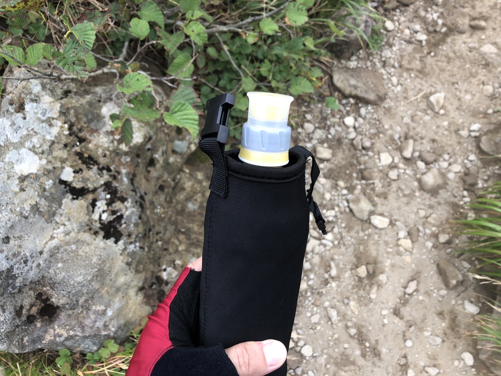 ところが、出し入れが少々やりずらい。急坂を登っている時に入れ損なって落とし、少し戻って拾ったこともある。