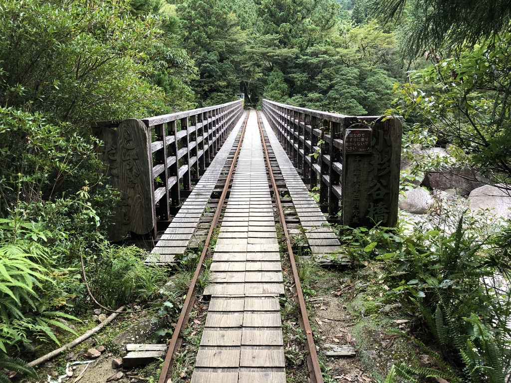 7時25分、小杉谷橋を渡る。この辺りに部落があり、小学校、そして中学校まであった。おそらく屋久杉を切り出す林業に携わる人たちが住んでいたのだろう。